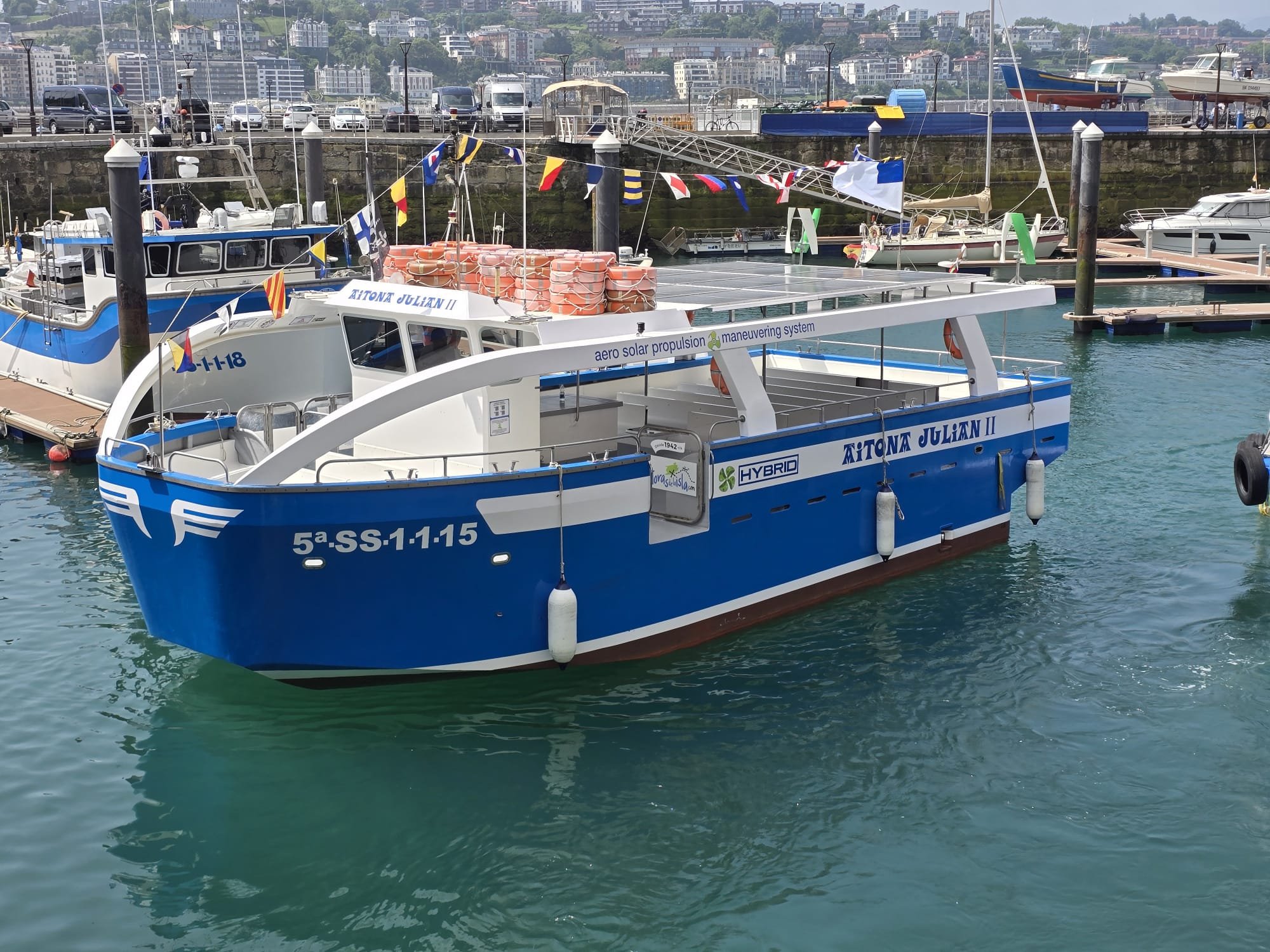 Solar panels and wind turbines are used to charge the batteries that power the electric motors. With room for 150 passengers, the 18-metre ship now has the largest capacity in the Basque Country, while also sending a strong signal in favour of climate-friendly tourism.